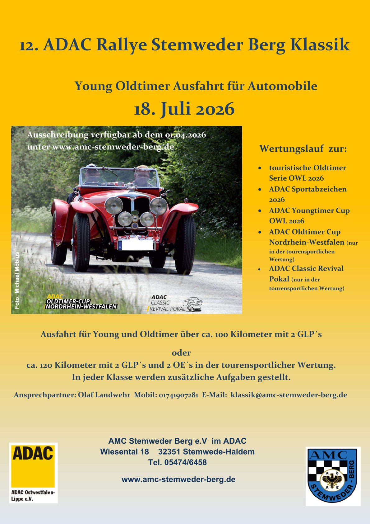 Im Jahr 2024 veranstalteten wir vom AMC Stemweder Berg bereits zum zehnten Mal die jährliche ADAC Stemweder Berg Klassik. Die Teilnehmerinnen und Teilnehmer bewältigen mit ihren mit ihren mindestens 20 Jahre alten Automobilen auf einer rund 100 bzw. 120 Kilometer langen Strecke verschiedene Aufgaben. Die Veranstaltung ist in eine touristische und eine tourensportliche Wertung unterteilt. Bei beiden Wertungen müssen zwei Etappen mit jeweils zwei Gleichmäßigkeitsprüfungen absolviert werden. Zusätzlich ist bei der tourensportlichen Wertung pro Etappe eine Orientierungsetappe zu befahren.